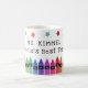 A melhor caneca de café professora do mundo personalizada com o nome do professor sob estrelas coloridas e acima de uma fileira de lápis num gradiente do arco-íris. Caneca de café para professor do jardim de infância com lápis de giz e estrelas coloridas.