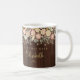 O Chef personalizou a caneca de café da cozinha chic country rustic country, apresentando delicada cor-de-rosa-pincel, creme de pêssego, e flores florais florais verdes de sábio bordas em um fundo de madeira marrom-escura com luzes de cordas. ++++++++++++++ Pode ser um belo presente personalizado de manutenção para um amante gourmet de cozinhar, para um aniversário, aniversário, Natal, um chá de panela ou um presente de casamento.
