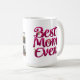 Encontre as canecas personalizadas da Melhor Mãe, desenhadas com flores cor-de-rosa e tipografia de tendências. Adicione o nome da mãe e uma colagem de fotos para um presente de Dia de as mães personalizado. Ideal para começar suas manhãs com amor.