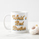 Esta caneca de café divertida apresenta a imagem de texto "Melhor Irmão do Mundo" em um roteiro retrô divertido. Adicione seu nome ao lado para personalizar. Faz um presente de excelente.