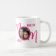 Esta linda caneca de café fotográfica da Best Mãe, é decorada com a palavra mãe, de cor-de-rosa na moda, num fundo branco. Facilmente personalizável com sua foto. Faz um presente perfeito para o Dia de as mães.
