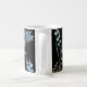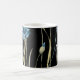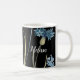 Dê flores para a mamãe que ela pode usar! Adicione um toque especial ao café, ao chá ou ao chocolate quente com este design floral monograma azul e ouro. O nome é fácil de personalizar. Monograma Floral Azul e Dourado no fundo preto como presente para a mãe!