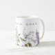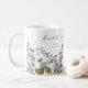 Esta na moda, floral e feliz caneca Dia de as mães apresenta elegantes flores lilás púrpuras de vintagem, com muitas folhas de cor d'água e folhas verdes botânicas. A tipografia moderna diz "melhor mãe de sempre", e você pode adicionar seu nome.