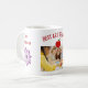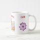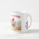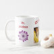 Uma caneca elegante, moderna e elegante de reconhecimento de professores com as palavras "Melhor Professora de Arte" + um nome e foto personalizáveis, duas lindas flores roxas, e uma maçã. Você também pode mudar as palavras para "Melhor Professor Nunca" ou a palavra ART para ARTS, se desejar.