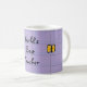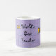 Uma caneca de excelente para um professor na sua lista...fundo roxo com pequenas borboletas amarelas.