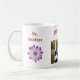 Uma caneca bonita, moderna e elegante de apreciação do professor com as palavras "Melhor Professor Nunca" em todos os bonés em uma fonte sans limpa + um nome e foto personalizáveis, duas flores roxas e uma maçã.