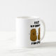 Brincadeira engraçada com palavras, caneca com trocadilho apresentando duas batatas marrons de desenho animado cômico com rostos felizes de mãos dadas. Acima e abaixo das batatas em texto preto negrito estão as palavras "melhores amiguinhos de batata para sempre"