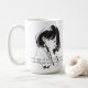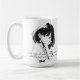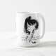 Mata de café de anima negra e branca apresentando uma linda moça monocromática esboçada, combinada com a linha suave: "Esse seu sorriso poderia me aquecer mais do que o café poderia." Uma mistura perfeita de elegância e doçura, esta caneca faz com que cada gole se sinta como um elogio gentil — ideal para fãs de anime que amam um toque romântico com seu suspiro matinal.