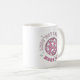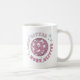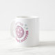 Uma caneca retrô, branca e rosa, com bola cintilante de disco com a mensagem "Menos Atropecador, Mais Glitter".
