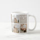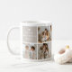 Crie uma caneca de café fotográfica personalizada para Mamães com 7 fotos da sua escolha, mostradas em um layout de modelo de grade quadrado, três áreas de cubo coloridas para que você adicione seu próprio texto. O primeiro cubo diz "Dia de as mães Feliz". O segundo cubo lê 'Melhor Mamãe do Mundo' em uma combinação de roteiro e tipografia de tendências e um pequeno coração branco bonito. A terceira caixa diz "Nós Te Amo", nome/s e ano. Os cubos podem ser alterados para qualquer cor clicando na opção personalizar mais. Simplesmente personalize acrescentando comemoração, mensagem, nome/s e ano para fazer um presente especial. Perfeito para aniversários, Dia de as mães ou qualquer outra ocasião especial!