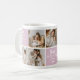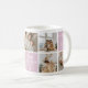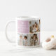 Crie uma caneca de café fotográfica personalizada para Mamães com 7 fotos da sua escolha, mostradas em um layout de modelo de grade quadrado, três áreas de cubo coloridas para que você adicione seu próprio texto. O primeiro cubo diz "Dia de as mães Feliz". O segundo cubo lê 'Melhor Mamãe do Mundo' em uma combinação de roteiro e tipografia de tendências e um pequeno coração branco bonito. A terceira caixa diz "Nós Te Amo", nome/s e ano. Os cubos podem ser alterados para qualquer cor clicando na opção personalizar mais. Simplesmente personalize acrescentando comemoração, mensagem, nome/s e ano para fazer um presente especial. Perfeito para aniversários, Dia de as mães ou qualquer outra ocasião especial!