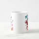 The mug design features a fun and vibrant Christmas theme. At the center, there is a cool, modern Santa Claus wearing sunglasses, sneakers, and a red outfit with colorful geometric patterns. Santa is striking a confident, dancing pose with one fist up and the other bent at his waist.