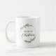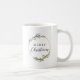 Mug featuring a minimalist watercolor wreath with red floral and green foliage accents. This elegant wreath frames the greeting "Merry Christmas". Makes a great gift.