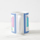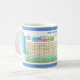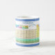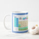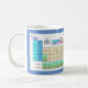Uma caneca gênica mostrando todos os elementos da mesa periódica. Inclui o símbolo, o nome e o número atômico de cada elemento. As diferentes categorias de elementos são representadas por cores diferentes e inclui um indicador do estado (sólido, líquido ou gás) de cada elemento à temperatura ambiente. Ideal para estudantes de química ou física que querem um guia prático de referência para os elementos que usarão todos os dias. Fácil de aprender subliminarmente toda vez que alguém faz uma xícara de café! Aprender ficou fácil - é por isso que é uma caneca gênica.