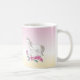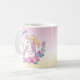 Uma bela ilustração de uma garota com cabelo comprido em seu cavalo branco, com uma terra de flores rosa e lilases. Esta obra de arte original é criada por Daniella
