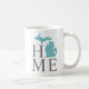 Na moda personalizada caneca de café apresenta um design de tipografia com texto "Home" e mapa do estado de Michigan. Clique na opção Personalizar para mover o marcador da cidade do coração branco em ambos os lados da caneca. Você pode posicioná-la diretamente sobre a cidade onde você mora ou sobre a sua cidade natal. Cinzas de carvão, azul aqua e cores brancas.