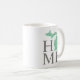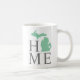 Na moda personalizada caneca de café apresenta um design de tipografia com texto "Home" e mapa do estado de Michigan. Clique na opção Personalizar para mover o marcador da cidade do coração branco em ambos os lados da caneca. Você pode posicioná-la diretamente sobre a cidade onde você mora ou sobre a sua cidade natal. Cinza de carvão, jade / hortelã verde e cores brancas.