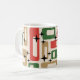 A festive mid-century composition featuring red, gold, and green rectangles scattered across a soft beige background, punctuated by crisp black starbursts. The geometric layout evokes vintage holiday wrapping paper and atomic-era ornamentation, blending bold shapes with twinkling accents. The palette channels cozy retro cheer, while the rhythmic repetition of forms adds a playful, celebratory energy—perfect for Christmas décor with nostalgic flair and graphic charm.