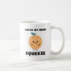Caneca divertida com uma laranja adorável com um rosto sorridente e as palavras "você é meu esmagador" em texto preto.