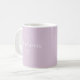A modern minimalist personalized mug featuring a soft pastel background, elegant white lettering, and a delicate heart detail.
