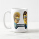 Hooligans engraçados em óculos de minion seguram uma caixa com a inscrição