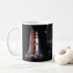 A última missão americana à Lua no programa Apollo da NASA foi a Apolo 17. O veículo lançador Saturno V está posicionado no Launch Pad 39A durante a contagem regressiva com a Lua acendendo no céu na data de lançamento, 7 de dezembro de 1972. Esta foi a sexta missão de pouso lunar tripulada.