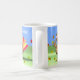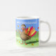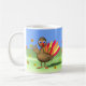 Uma xícara alegre com minha imagem original de um bebê peru acenando, com folhas de maple soprando ao seu redor. Texto personalizável diz "Feliz Dia de Ação de Graças!"