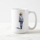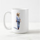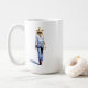 A stylish mug design featuring a modern cowgirl walking confidently in denim, boots, and a classic western hat. The clean silhouette, bright highlights, and bold artistic style give this design a contemporary western vibe. Perfect for fans of cowboy culture, western fashion, and expressive minimal art.