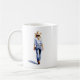 A stylish mug design featuring a modern cowgirl walking confidently in denim, boots, and a classic western hat. The clean silhouette, bright highlights, and bold artistic style give this design a contemporary western vibe. Perfect for fans of cowboy culture, western fashion, and expressive minimal art.