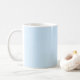 This coffee mug features a large bold lowercase initial in orange on a soft light blue background — graphic, modern, and very giftable. A fun personalized gift for anyone who loves a statement mug. You customize the letter.
