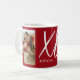 Modern Script XO Year Photo Mug. Celebrate your unique love story with this elegant and modern photo design. Featuring a striking red background and a chic white script "XO" design, you can showcase ttwo of your favorite memories in a stylish grid. It is the perfect personalized home decor accent, and makes a thoughtful gift for Valentine’s Day, weddings, anniversaries, or birthdays. Upload your favorite photos and change the year to the current year. Background color and font colors can be changed in the design edit tool. Adjust photos as needed. Contact designer with any customization questions.