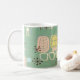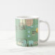 Jeepers! Se você é um fã do estilo moderno do meio século, você irá positivamente macaco para esta caneca de café moderna do design gráfico do meio século. As características de design uma réplica de um tecido do vintage com gráficos legal. O fundo é verde de jade com design kitschy no ecru, no marrom, no amarelo, no azul e no rosa. Esta é a maneira perfeita de adicionar algum dom do meio século a seu café.