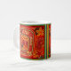 Caneca de café colorida com design inspirado nos antigos tecidos Mola dos índios Cuna das Ilhas de San Blas.
