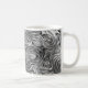Mug com um design abstrato de "aparência de metal líquido" legal, e formas borbulhantes e giratórias em tons de cinza prateada. Pode ser usado como um fundo para o seu próprio texto, imagens e ideias. Observe que esta é uma imagem de arte digital impressa, ela não brilha ou contém metal real.