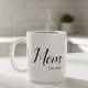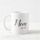 Celebrate motherhood in style with this modern Mom Established coffee mug, featuring black typography and the year she became a mom. Fully customizable, add a year for each child. This makes a thoughtful gift for new moms or a sentimental keepsake for yourself.