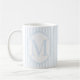This elegant monogram mug features a soft blue and white striped design with the letter M in the center.