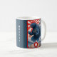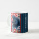 Start the day out something fierce with your favorite beverage while using this cool, striking, unique, custom monogram name coffee mug. A retro vintage, turquoise blue lizard monster appears over turquoise waves along with red and white sun graphics and your monogram initial. The background sports navy blue stripes along with your name. Personalize with your name and initial. Makes a fun and bold statement every time you use it. Makes a great gift for someone special, even yourself!