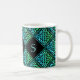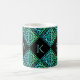Uma caneca monográfica com 3 iniciais e um nó celta azul esverdeado repetiram azulejo de design de diamante contra um fundo preto. Personalize com suas iniciais!
