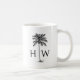 Esta caneca inspirada na costa moderna apresenta uma palmeira preta em branco com um monograma que você pode personalizar com sua escolha de iniciais.
