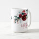 Preguiça botânica de cor aquática rosa com nome eflorado feminino floral e caneca monograma. Borgonha, marsala, rosa branco de peônias de cor aquosa, design de chich de buquê floral botânico com folhas verdes escuras, ramos de pinheiros e bagas em fundo branco. Posicione um elegante script de tipografia manuscrito que você pode adicionar seu nome e monograma inicial. Um presente perfeito, monograma, no outono e no inverno. 3334