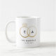 Um monograma moderno brilha com anéis de casamento dourados entrelaçados com texto fácil de personalizar para suas iniciais, nome de casado e data de casamento neste clássico fazer de caneca branca é um aquecimento de casa divertido ou um presente de aniversário para os recém casados.