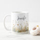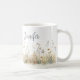 Esta linda caneca de café apresenta um campo rústico de flores silvestres suaves em aquarela. Adicione um nome para personalizá-la. Faz um ótimo presente para a noiva, madrinha, mãe, melhor amiga ou filha! Criado por Simply Farmhouse Press.