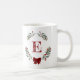 Monograma de Wreath Café Mug com botânicos vermelhos e verdes de inverno e bonito arco vermelho.