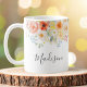 Caneca De Café Monograma de Nome Personalizado Aquarela Floral En