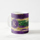 Caneca De Café Monograma de Padrão de Pincéis Dourados Roxos Verd