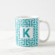 Caneca De Café Monograma de Padrão Geométrico Azul e Branco