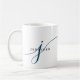 Caneca De Café Monograma de Script Azul de Marinho Simples Elegan