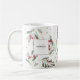 Beba seu café ao estilo com esta caneca chic apresentando seu monograma enquadrado por um padrão botânico de morango vermelho invertido acentuado por bolinhas falsas de ouro. Divertido e festivo - a caneca perfeita para doação de presente de Natal.