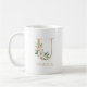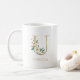 Caneca De Café Monograma Dourado Letra U | Floral Rosa Branco Ver