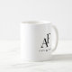 Uma simples caneca de café monograma de casamento com tipografia tradicional clássica em preto num estilo elegante. O texto pode ser facilmente personalizado com seus nomes para o design perfeitamente personalizado!